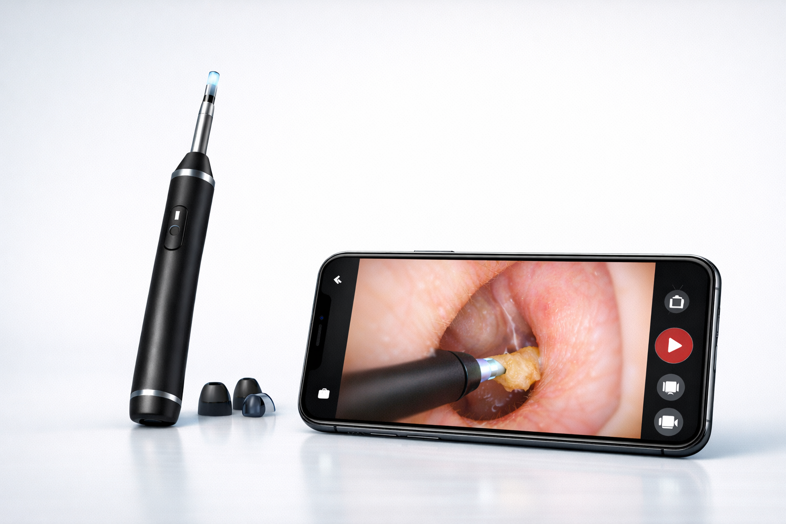 Waxby™ HD Ear Camera streams a live view of your ear canal to your phone, so you can safely remove wax buildup instead of blindly pushing it deeper with Q-tips.