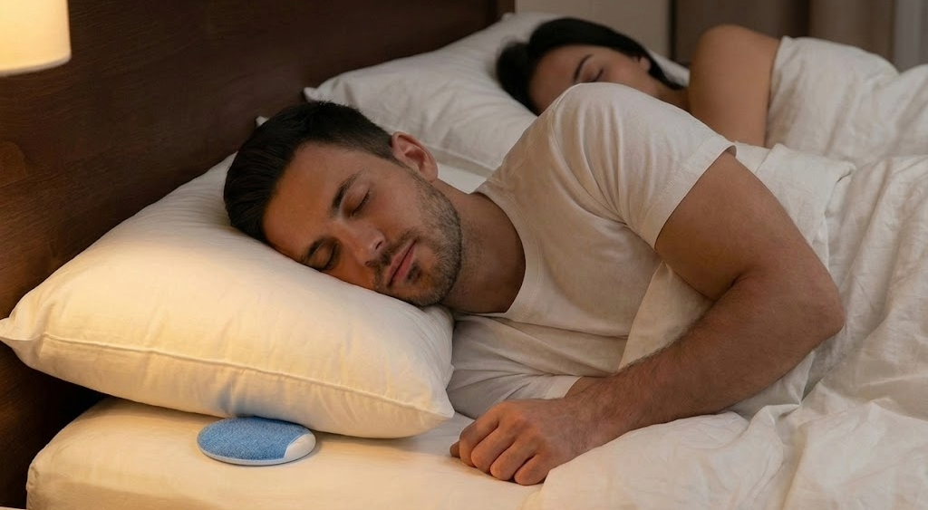 Instead of placing sound in your ears or into the room, QuietNest™ sits discreetly under your pillow — delivering close-range, directional audio while keeping the space around you quiet.